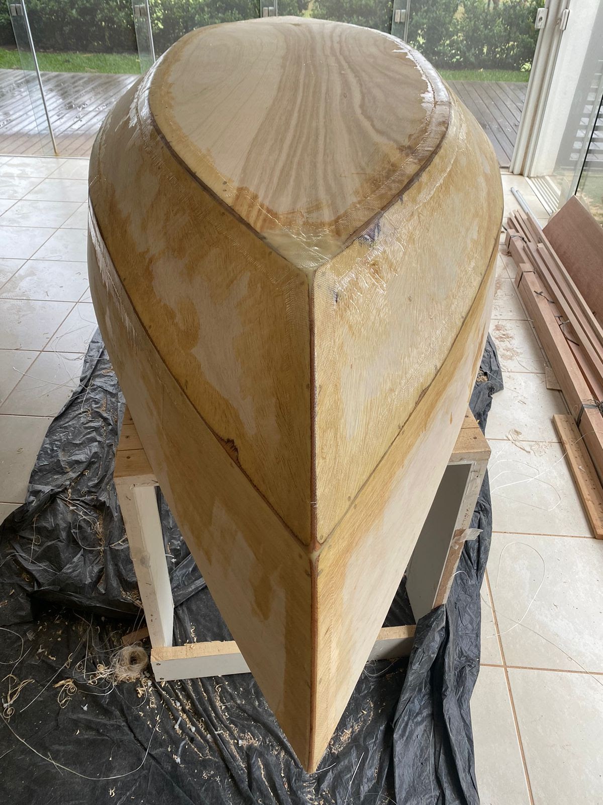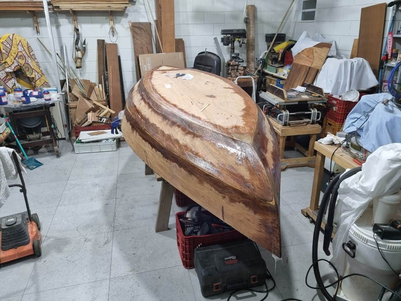 Building a Right Canoe is very easy. Its plywood stitch-and-glue hull can be lofted, cut and stitched in a day, and glued in another. The interior is spartan. Basically the Right Canoe has two flotation compartments fore and aft, and two thwarts. A Norwegian rudder allows it to be crewed from almost anywhere in the boat, sitting comfortably facing forward.